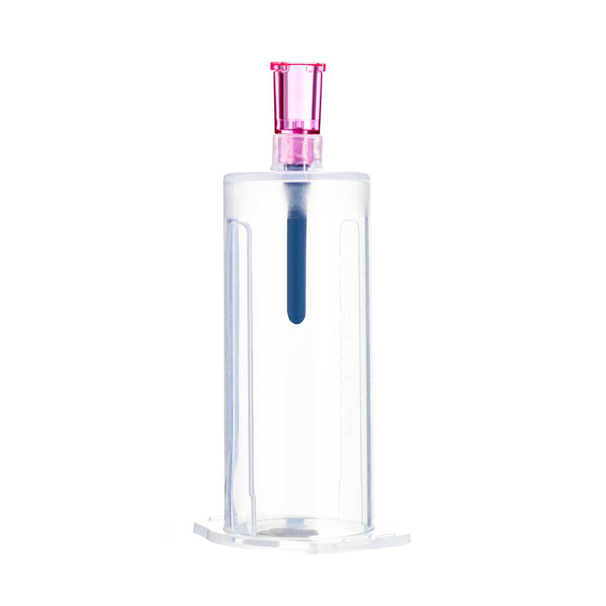 • Confeccionado em polipropileno cristalino, sem látex: permite a perfeita visualização do preenchimento do frasco.