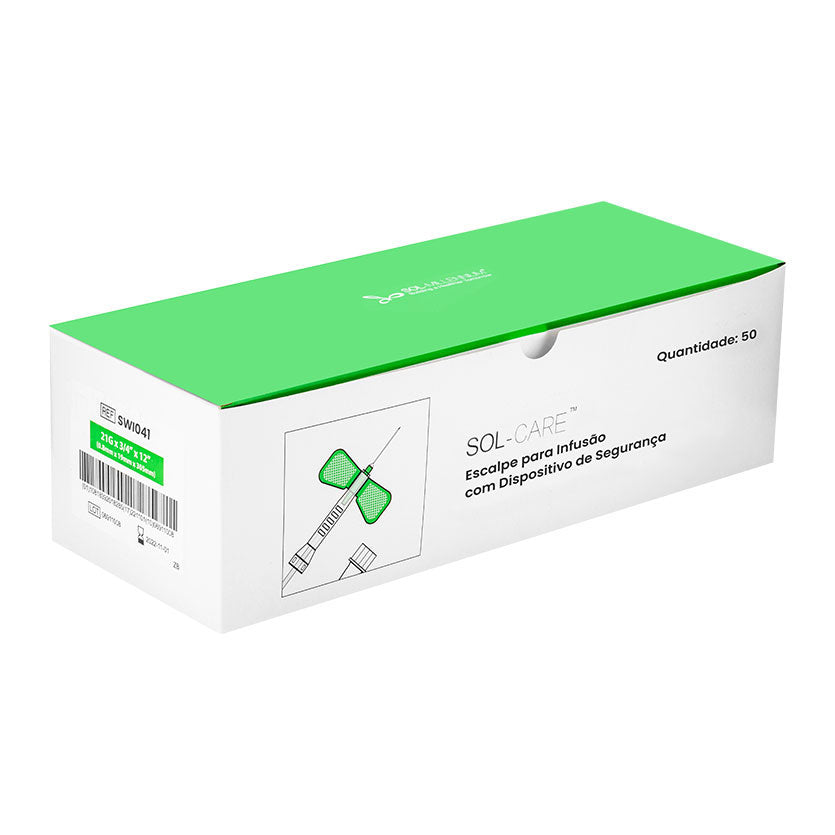 Projetado para prevenção de acidentes, o Escalpe para Infusão com Dispositivo de Segurança SOL-CARE™ possui agulha em aço inoxidável e lubrificada proporcionando maior conforto na venopunção. Conta com antiderrapantes nas asas da borboleta, trazendo maior firmeza para o profissional na punção do paciente. Os Escalpes de Segurança são utilizados para infusão de soluções intravenosas de curta duração. Seu dispositivo de segurança transparente, além de evitar acidentes perfurocortantes, permite a visualização do retorno venoso e auxilia o profissional na punção.